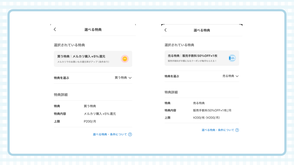 メルカリでのお買い物に使えるクーポンが付与されます。