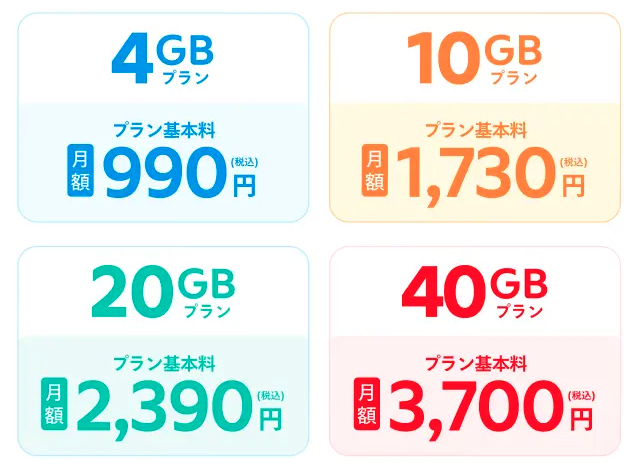 • 4GB:月額 990円