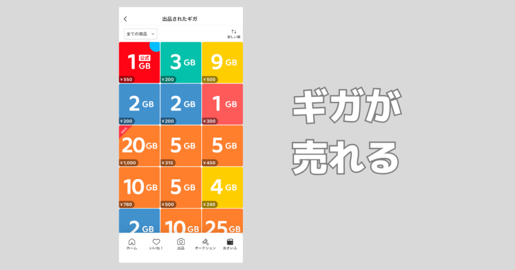 ギガがメルカリアプリ内で売れる