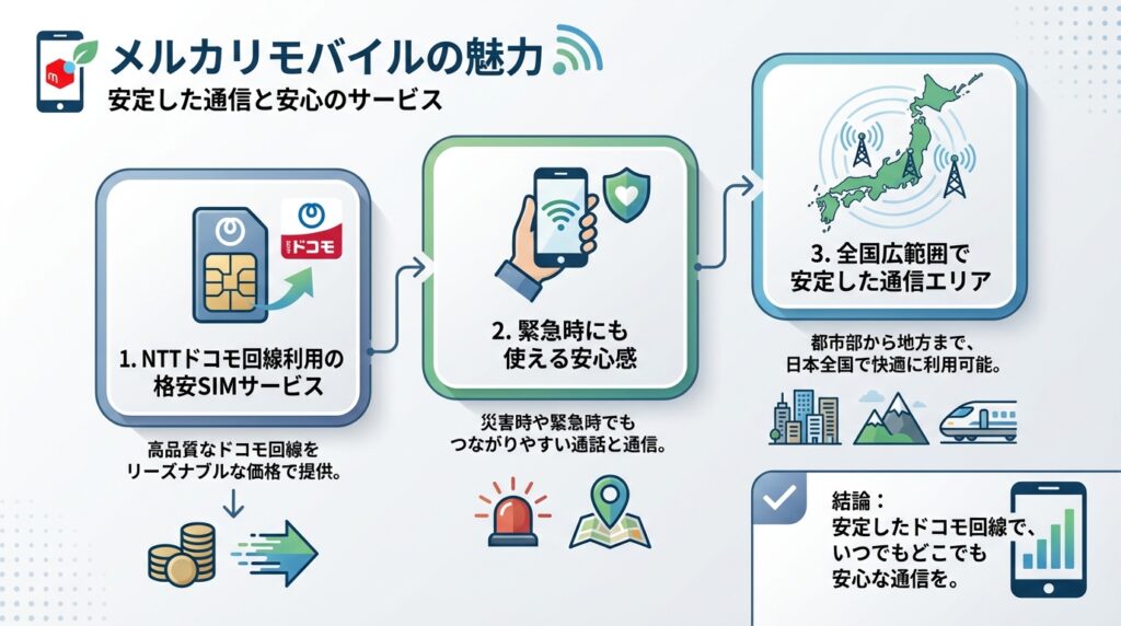 メルカリモバイルは、NTTドコモ回線を利用した格安SIMサービスです。